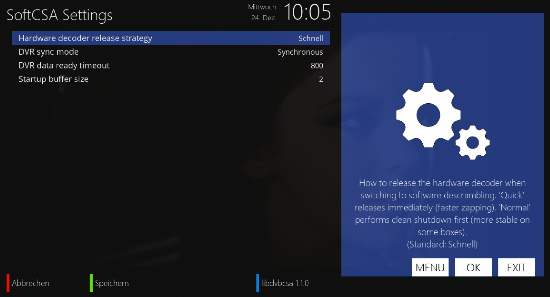 Unter Menü/Einstellungen/Entschlüsselung findet Ihr die SoftCSA-Settings